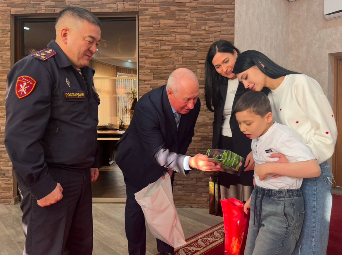 Начальник Управления Росгвардии по Астраханской области полковник полиции Андрей Кука подарил девятилетнему Кириллу набор «Слушать интересно» для развития слухового восприятия.