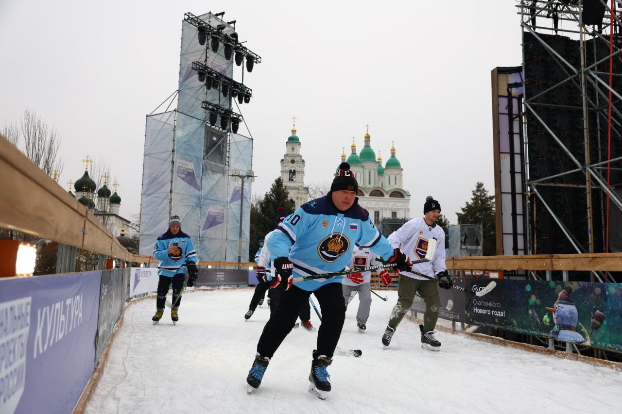 Астраханский губернатор завершил спортивный год товарищеским хоккейным матчем