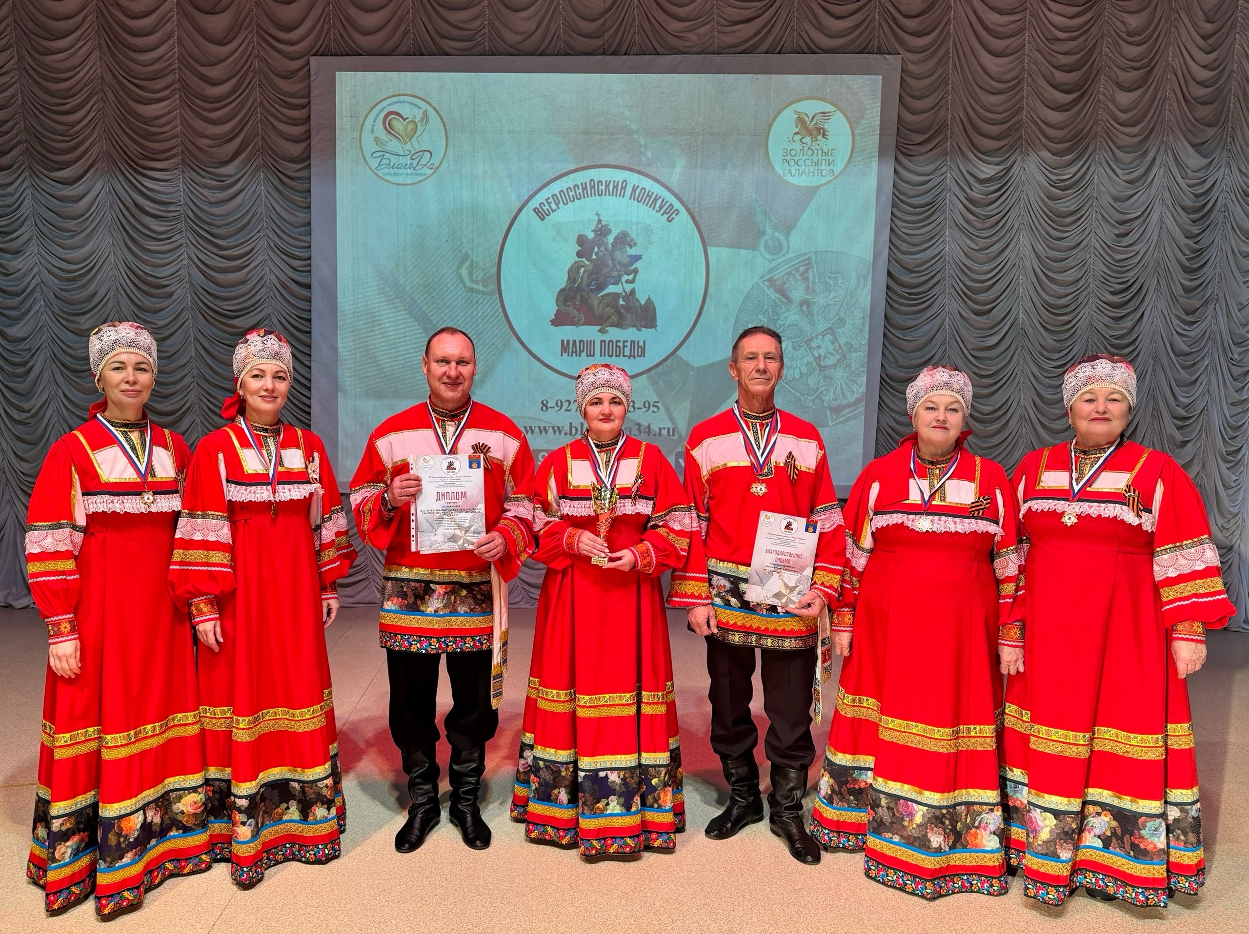 По итогам творческого состязания ансамбль «Воложка» получил сразу несколько наград высшего достоинства. Артисты проявили себя в двух вокальных номинациях: «Авторское произведение» и «Патриотическая песня». В первой номинации они исполнили композицию «Слава героям», написанную руководителями коллектива Яной Редькиной и Александром Павловым, а во второй — песню Геннадия Гордеева на слова Татьяны Брагиной «Молюсь за Россию». Жюри отметило их авторскую работу, присудив ансамблю Гран-при, а за патриотическую песню «Воложка» коллектив был удостоен диплома лауреата I степени. Успех был достигнут и в номинации «Художественное слово». Авторское стихотворение Яны Редькиной «День Победы» принесло еще один диплом Гран-при в копилку ансамбля «Воложка». Кроме того, руководители народного коллектива были награждены благодарственными письмами за весомый вклад в песенное искусство и искусство поэзии.