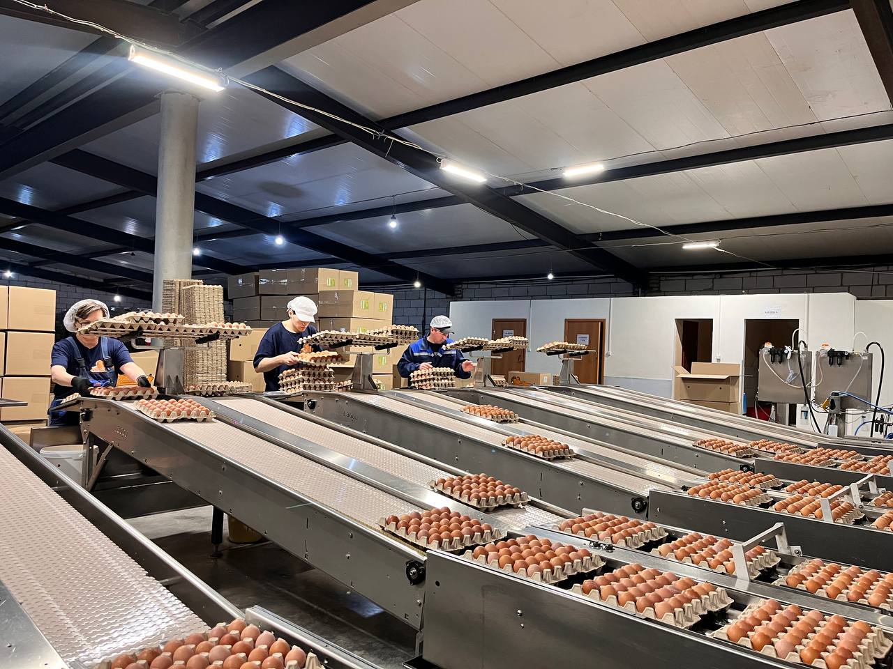 Сегодня харабалинские куры-несушки дают около 530 тысяч яиц в день. Помимо этого, на птицефабрике производят фарш, пельмени. С сентября 2024 года здесь изготавливают сосиски, сардельки, колбасу вареную и копченую. По словам Сергея Еськова, состав колбас полностью натуральный, без мяса механической обвалки. При этом цена на продукт приемлемая: 400 рублей за килограмм копченой, 330 рублей – вареной колбасы.