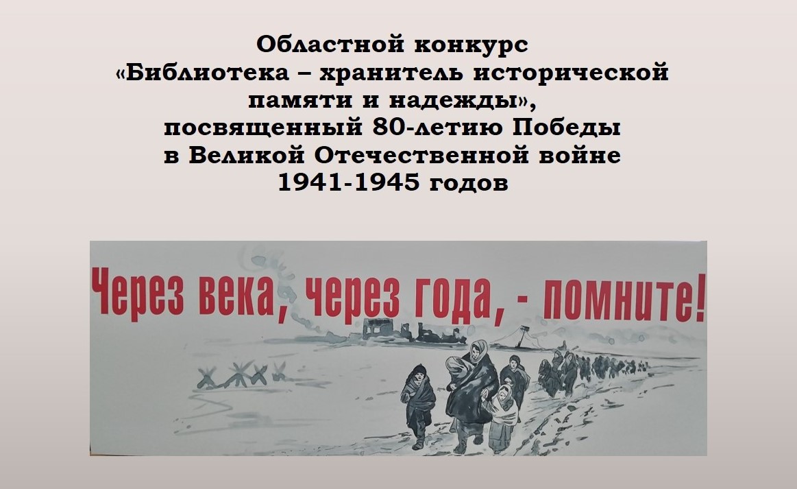Астраханская областная научная библиотека имени Н.К. Крупской объявляет областной конкурс среди муниципальных библиотек Астраханской области «Библиотека — хранитель исторической памяти и надежды», посвященный 80-летию Победы в Великой Отечественной войне 1941-1945 годов. Конкурс проводится с целью активизации деятельности библиотек в области патриотического воспитания. Организатором выступает отдел научно-исследовательской и методической работы библиотеки.