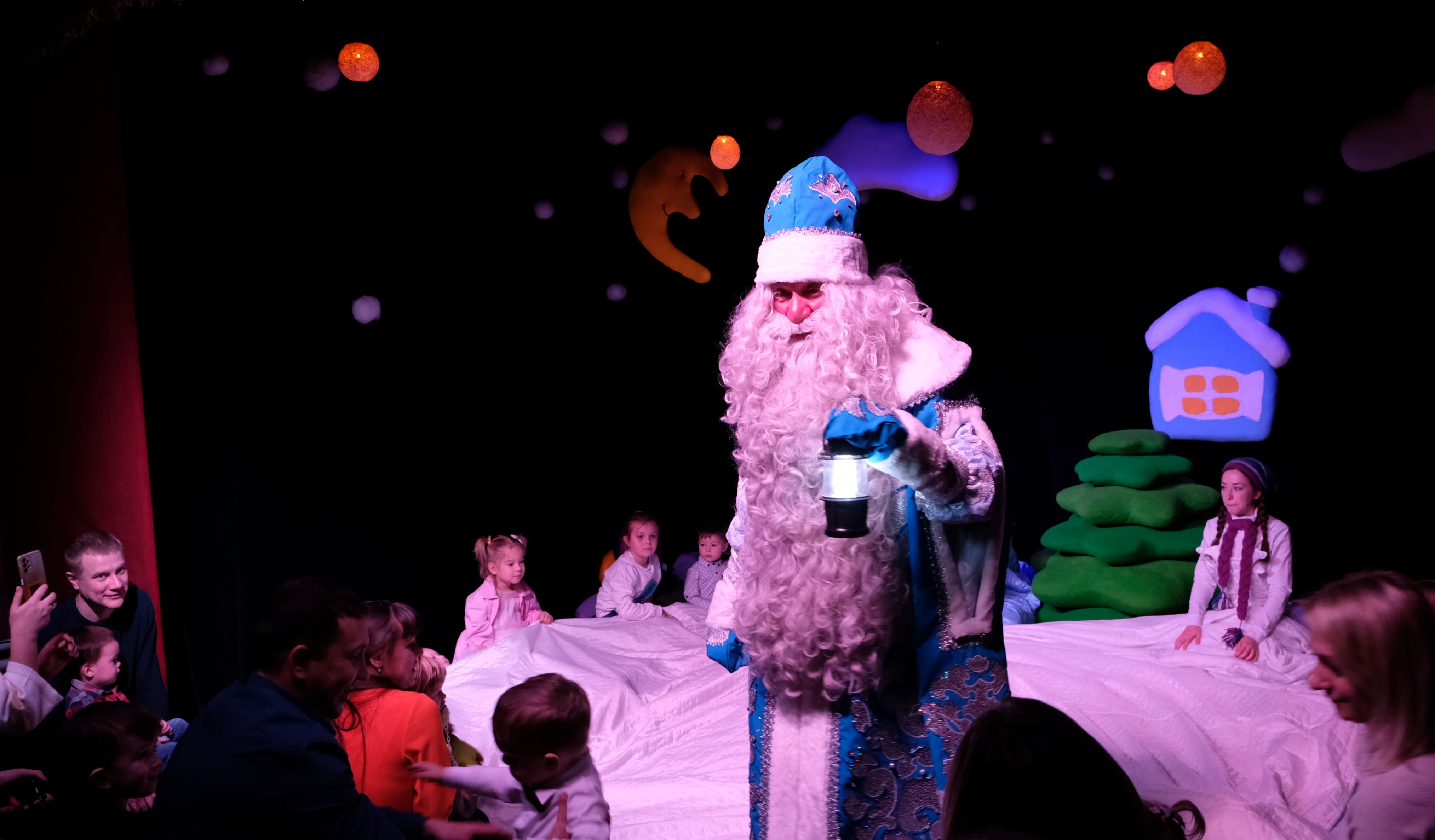 В большом зале проходят показы сказочной зимней сказки «Снежная королева», а в камерном пространстве малого зала — интерактивный спектакль «Подарок для Деда Мороза».