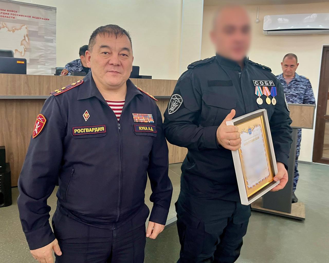 В Астрахани наградили отличившихся росгвардейцев в честь 32-летия СОБР «Каспий» регионального управления