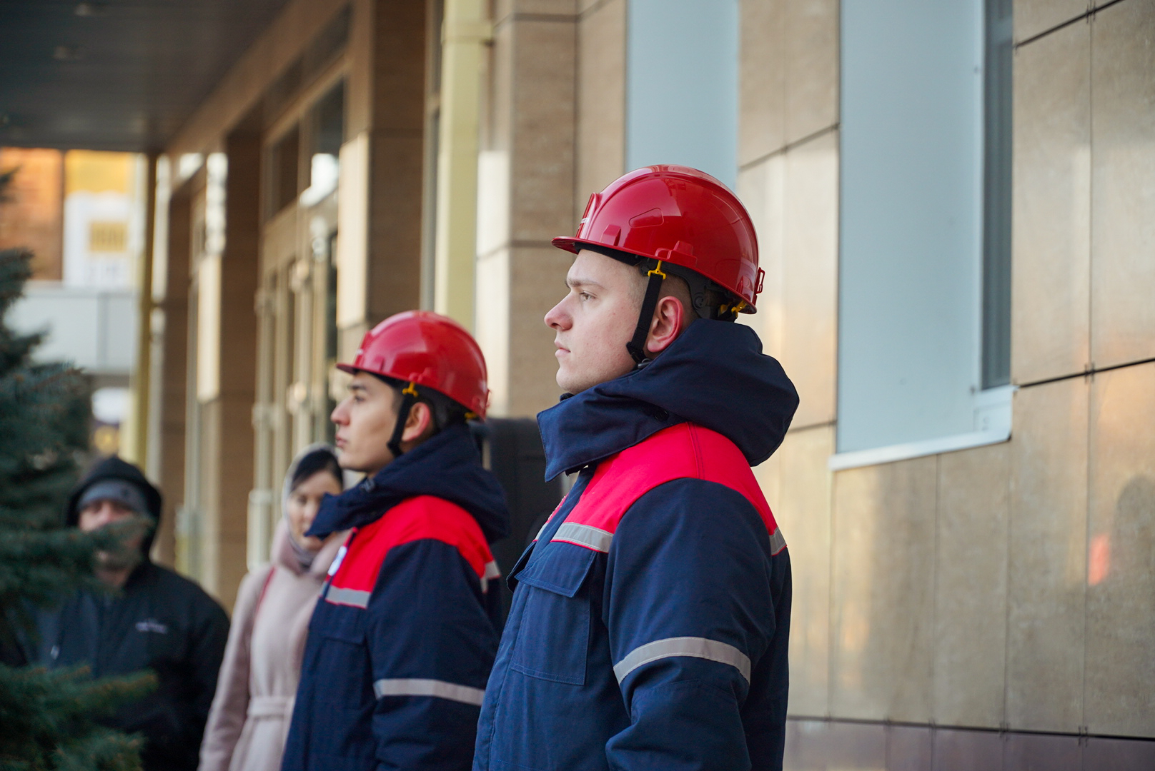 Состоялась торжественная церемония открытия монумента энергетикам региона. Почётное право снять белое полотно со скульптуры предоставили председателю правительства Астраханской области Денису Афанасьеву и генеральному директору «Россети Юг» Алексею Рыбину.