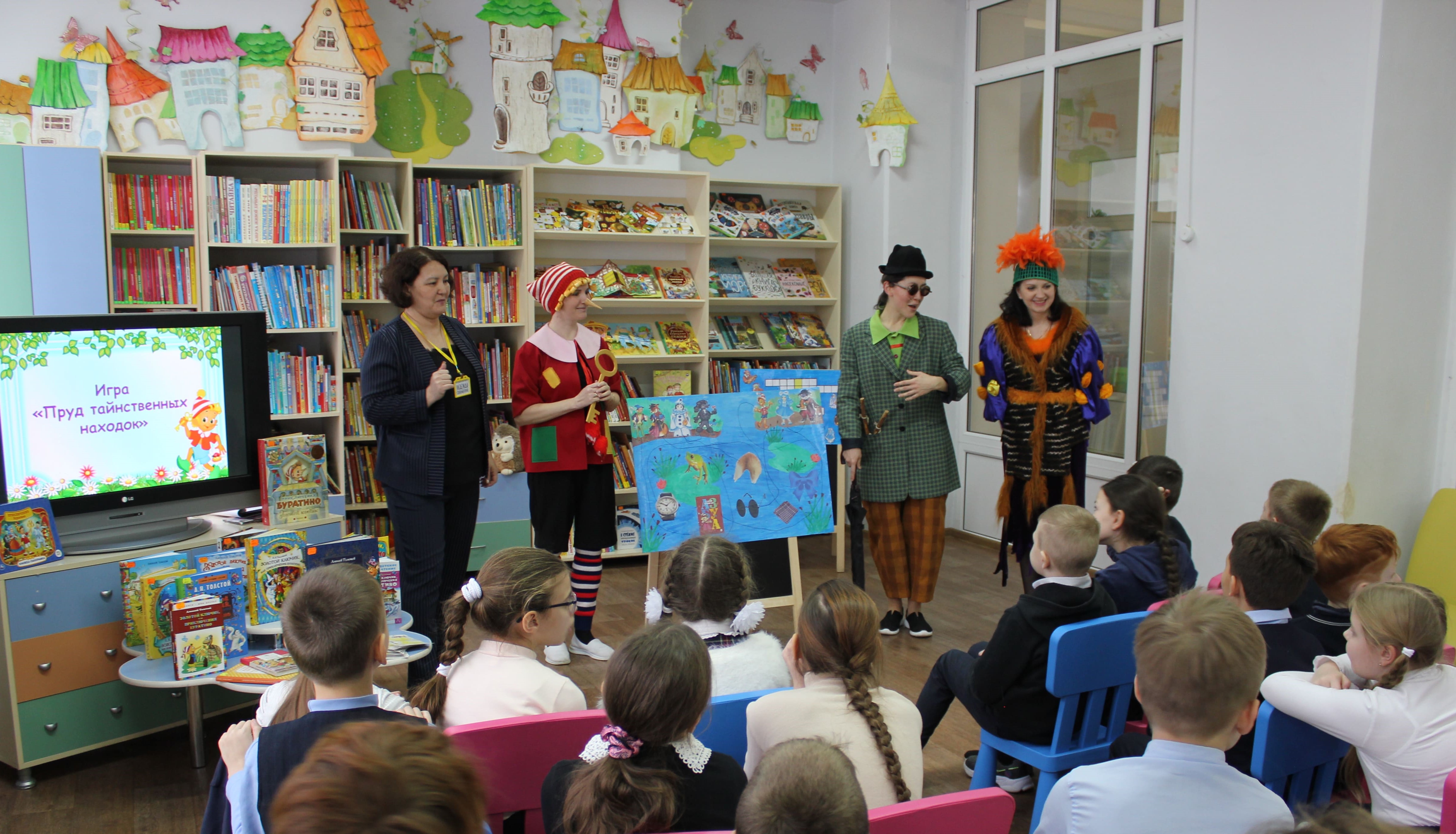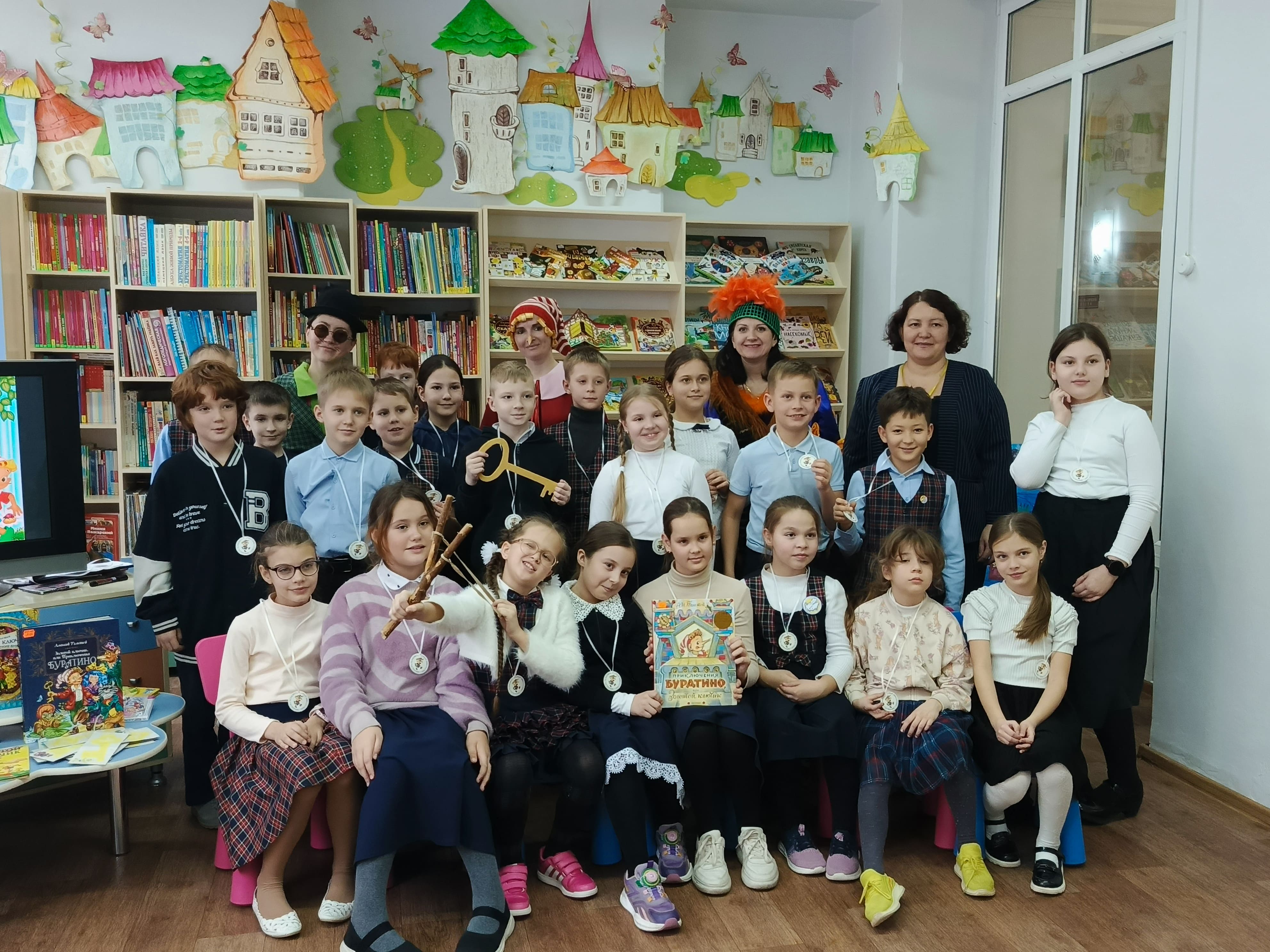 Ребята узнали интересные факты из жизни Алексея Толстого и творческой истории любимой повести, разгадали литературный кроссворд и приняли участие в увлекательной викторине «Тайны золотого ключика». Настоящим сюрпризом для школьников стало появление сказочных героев: озорного Буратино, хитрой лисы Алисы и смешного кота Базилио, которые приготовили для ребят веселые задания.