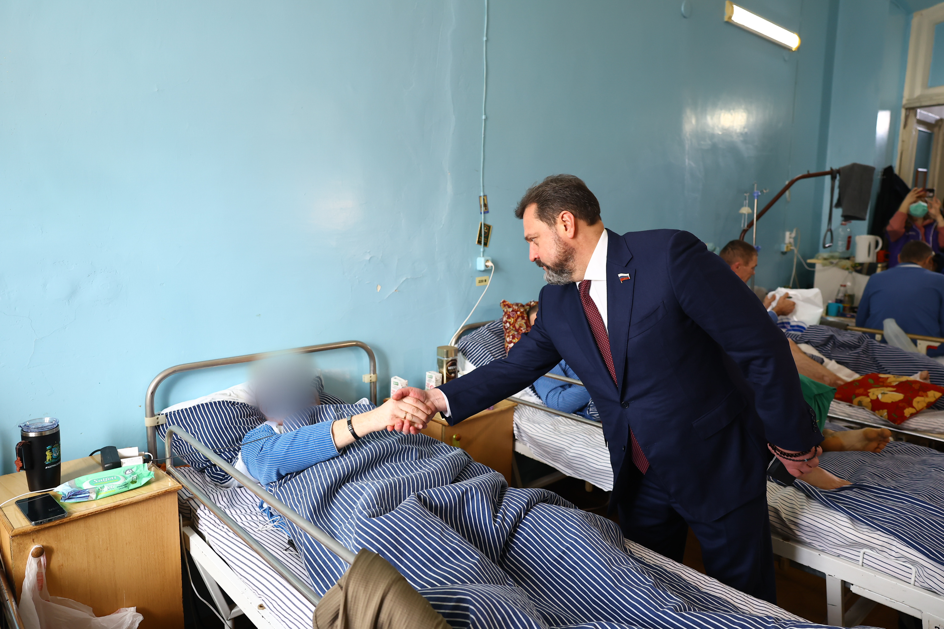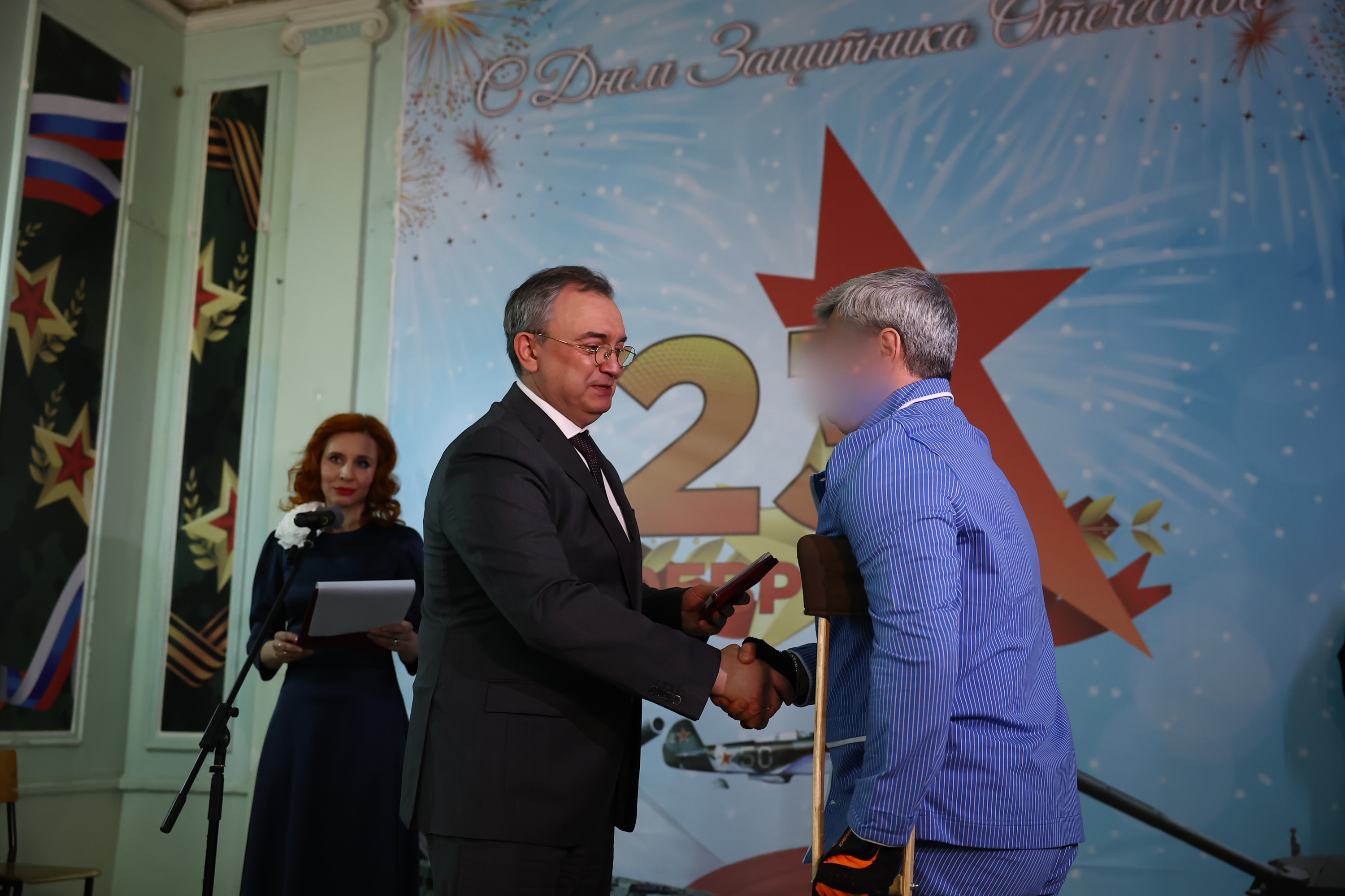 В преддверии Дня защитника Отечества по поручению главы региона Игоря Бабушкина вице-губернатор – руководитель администрации губернатора Павел Паутов и сенатор Совета Федерации Андрей Деркач навестили бойцов, которые восстанавливаются в госпитале. Они поздравили героев с праздником, вручили награды солдатам и врачам медучреждения.